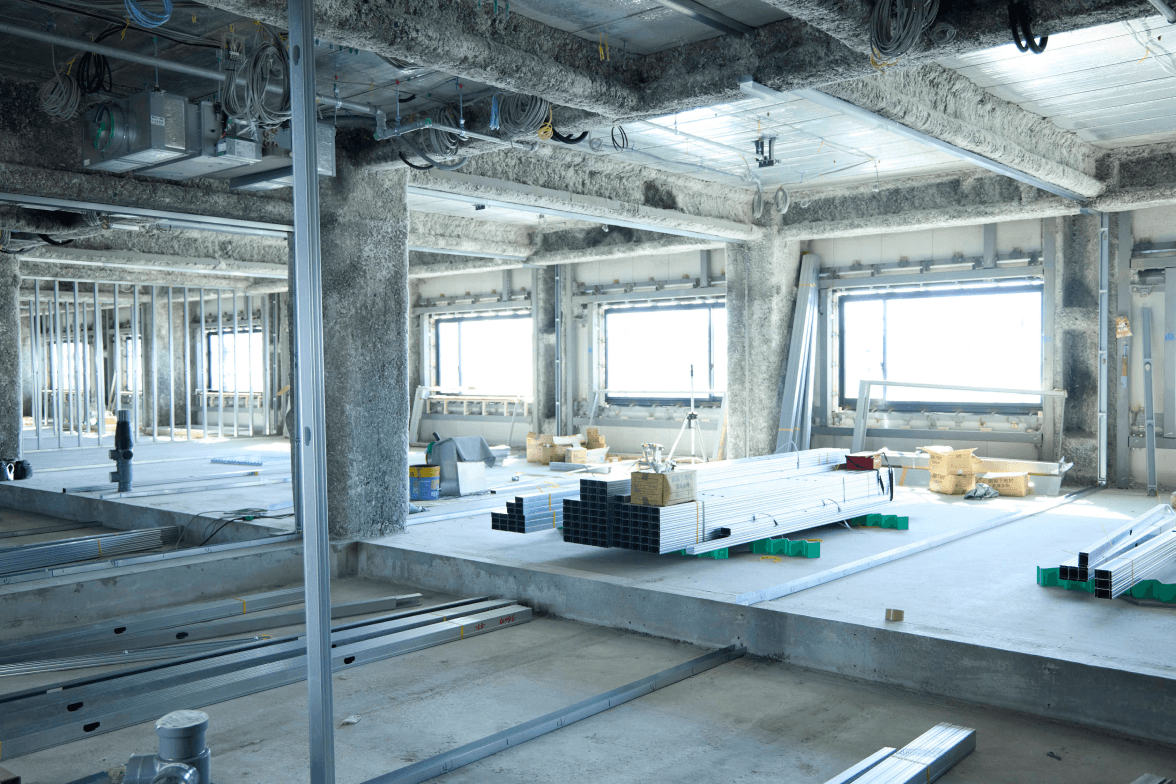 新築工事では主に、マンションやオフィスビルなどの施工を行っています。