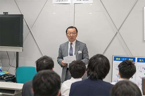 本社内に併設された「考動館(安全技術研修センター)」には、本物の高圧試験盤が設置され、本格的なリレー試験を、実際の受変電盤を使って体験することが出来ます。