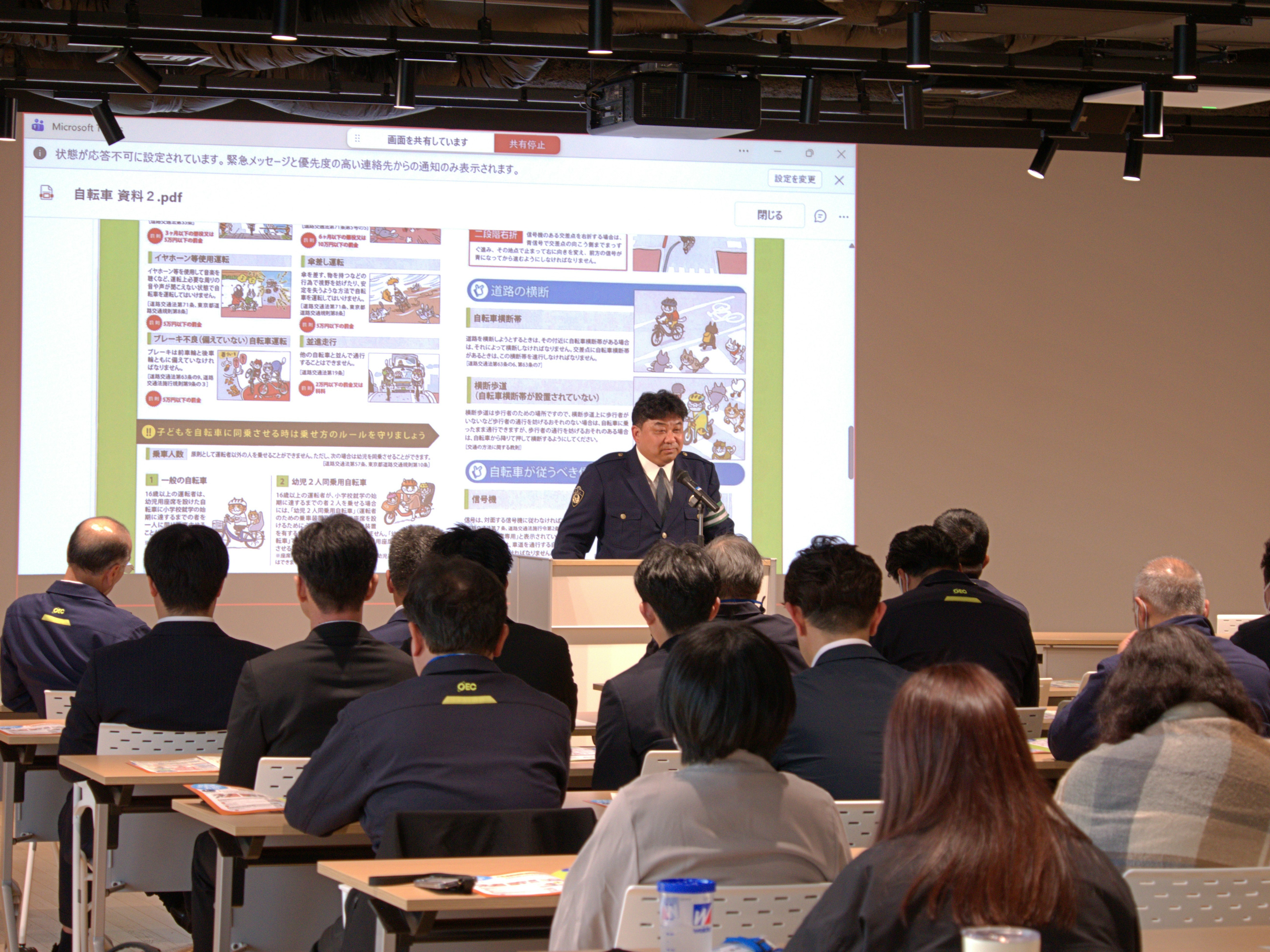 今回は道路交通法の改正を受け、本所警察署の方を講師としてお招きし、最新の交通ルールについてご講義いただきました。