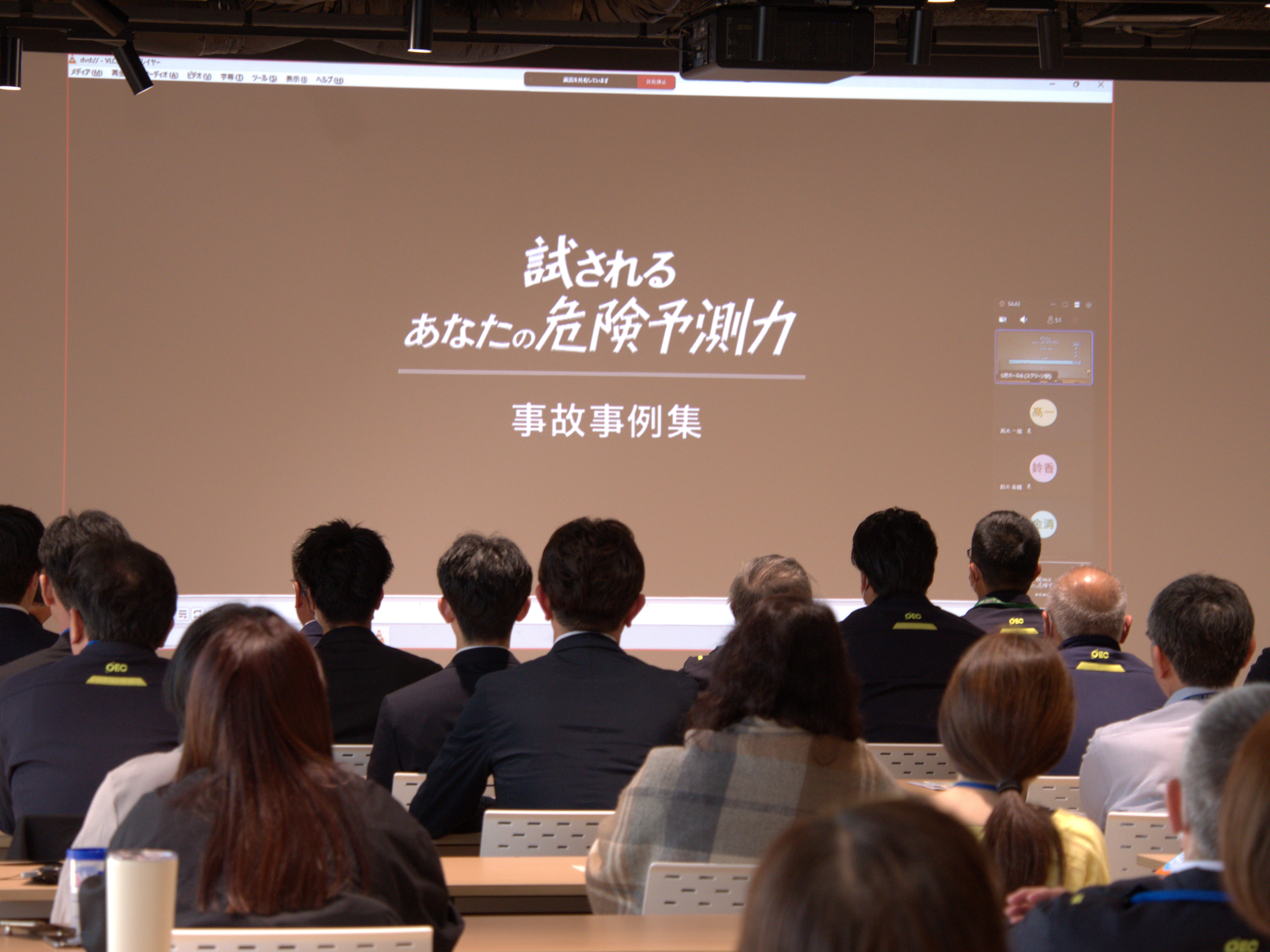 勉強会では、実際の事故映像を交えながら、交通事故が起こる背景や注意すべきポイントについて学びました。